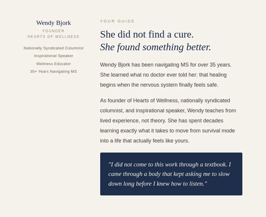 Today, as an international bestselling author, speaker, and founder of Hearts of Wellness.com, I walk beside women as they rediscover their inner strength, release overwhelm, and create a life that honors their body’s truth instead of surrendering to the system.